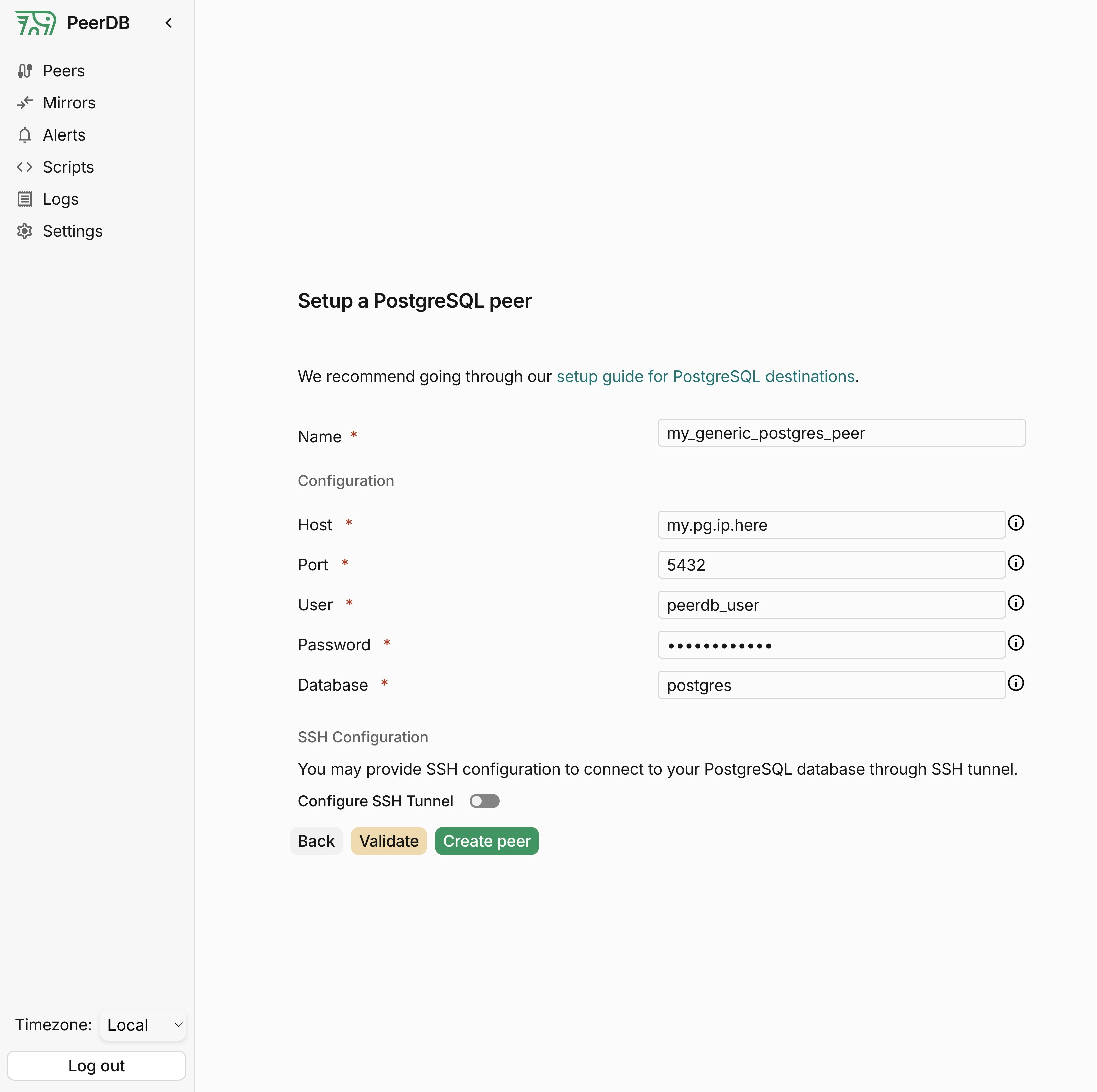 Create the PostgreSQL Peer
