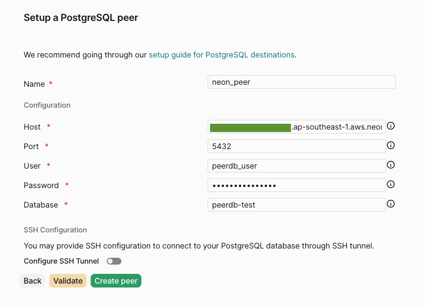 Create Neon Postgres Peer in PeerDB UI