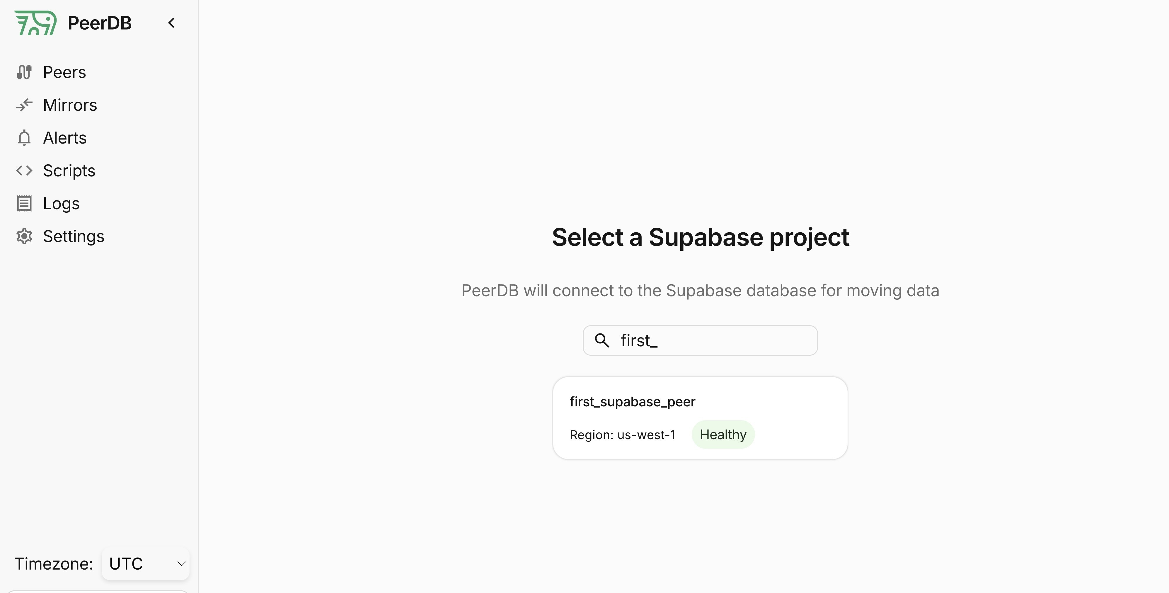 - You should now see a list of your Supabase Projects. Click on the project you want to create the peer for.