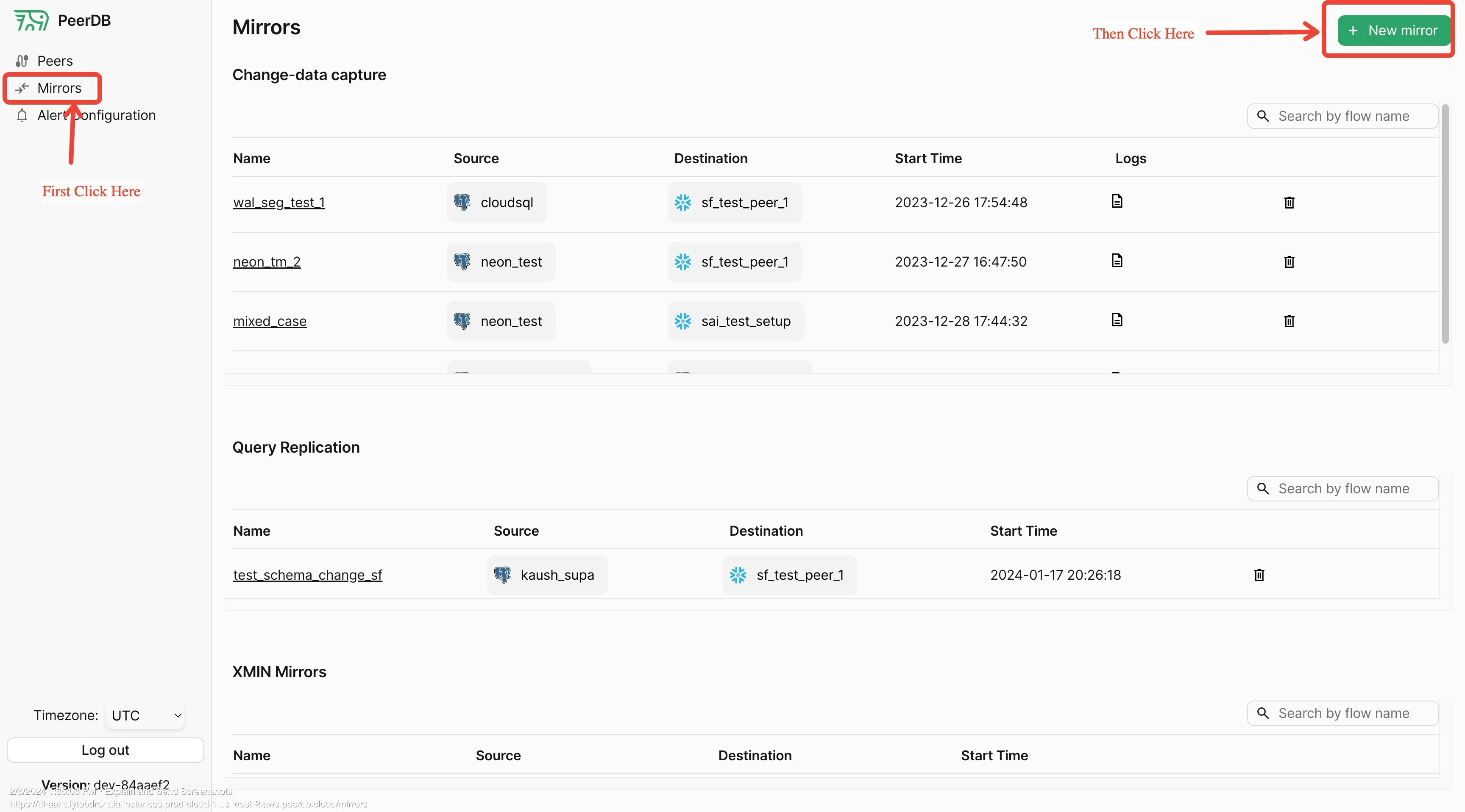 Enter a unique identifier for the mirror name. This is used to uniquely identify the mirror in the PeerDB UI. Make this alphanumeric and without any special characters except underscores.