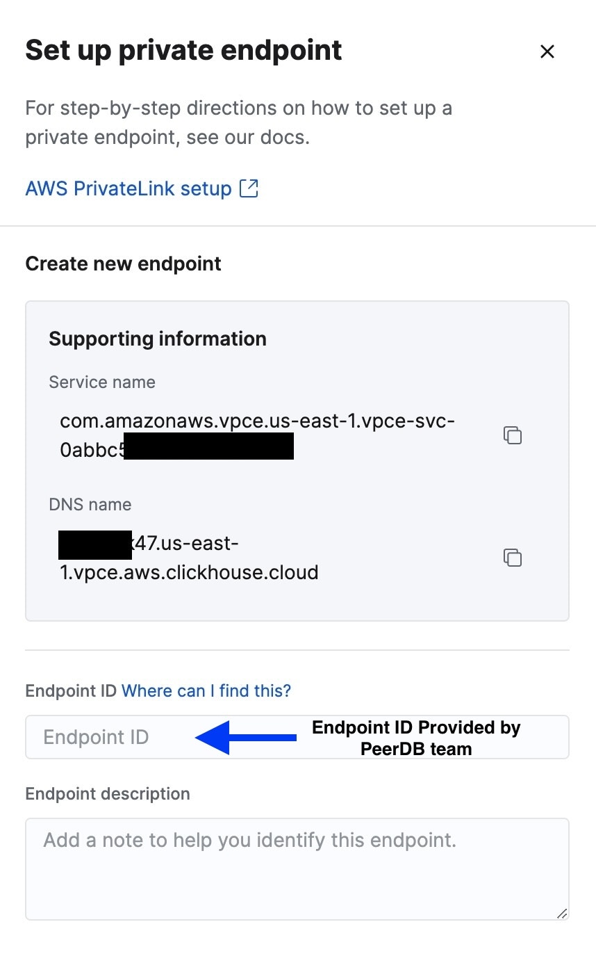- PeerDB Team will setup the necessary Endpoint Interface