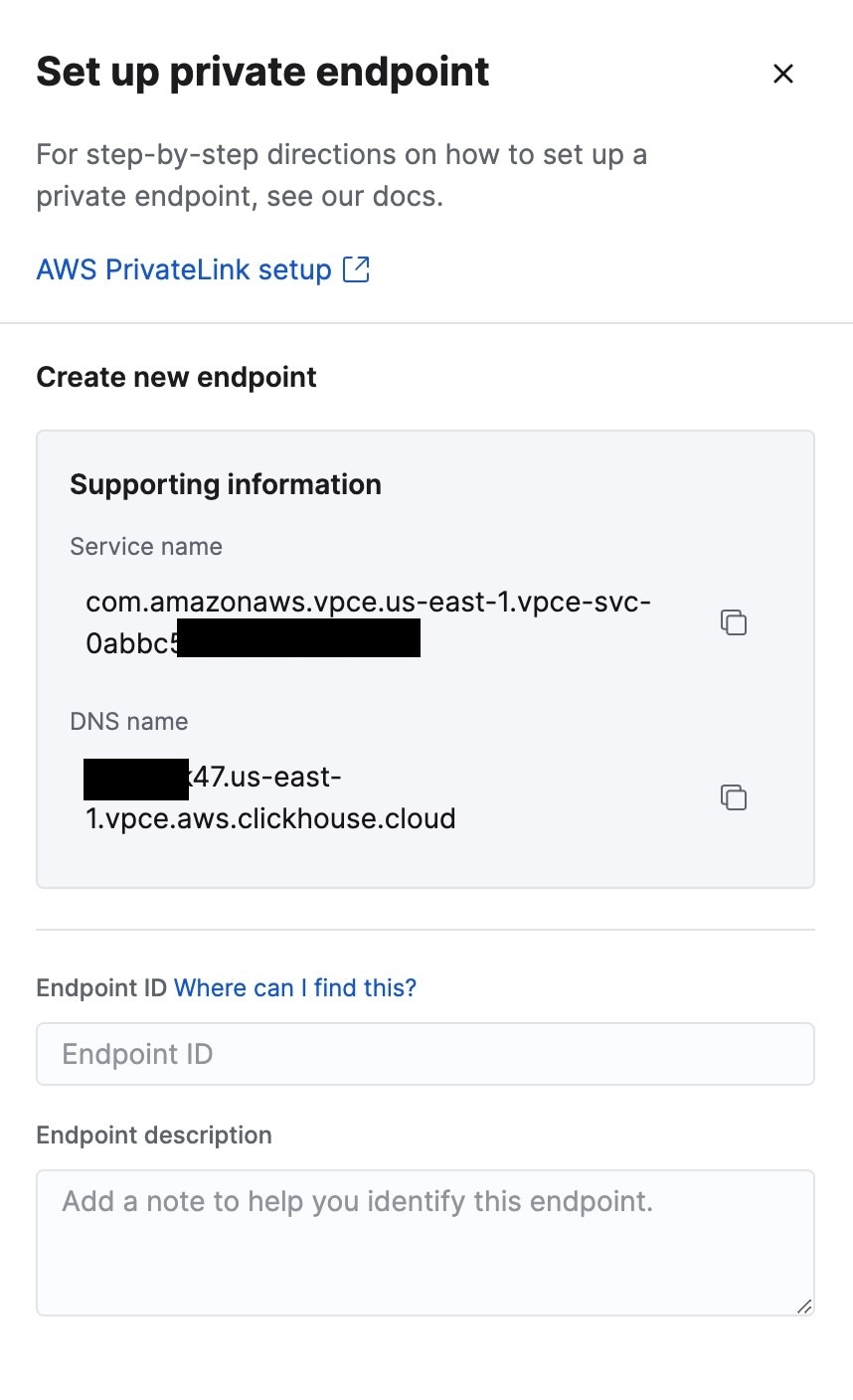 ClickHouse Cloud Console: Setting up a Private Endpoint