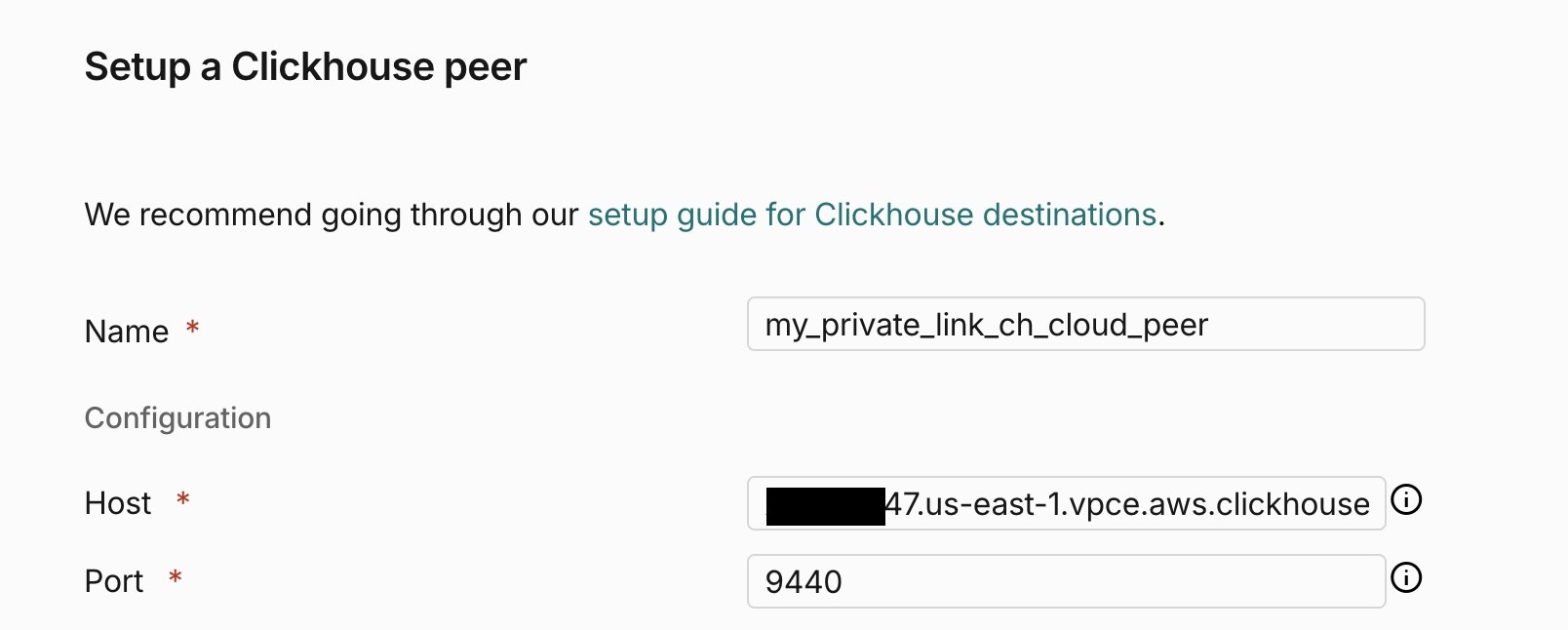- For further details on how to create a ClickHouse Cloud peer, refer to the ClickHouse Cloud Setup Guide